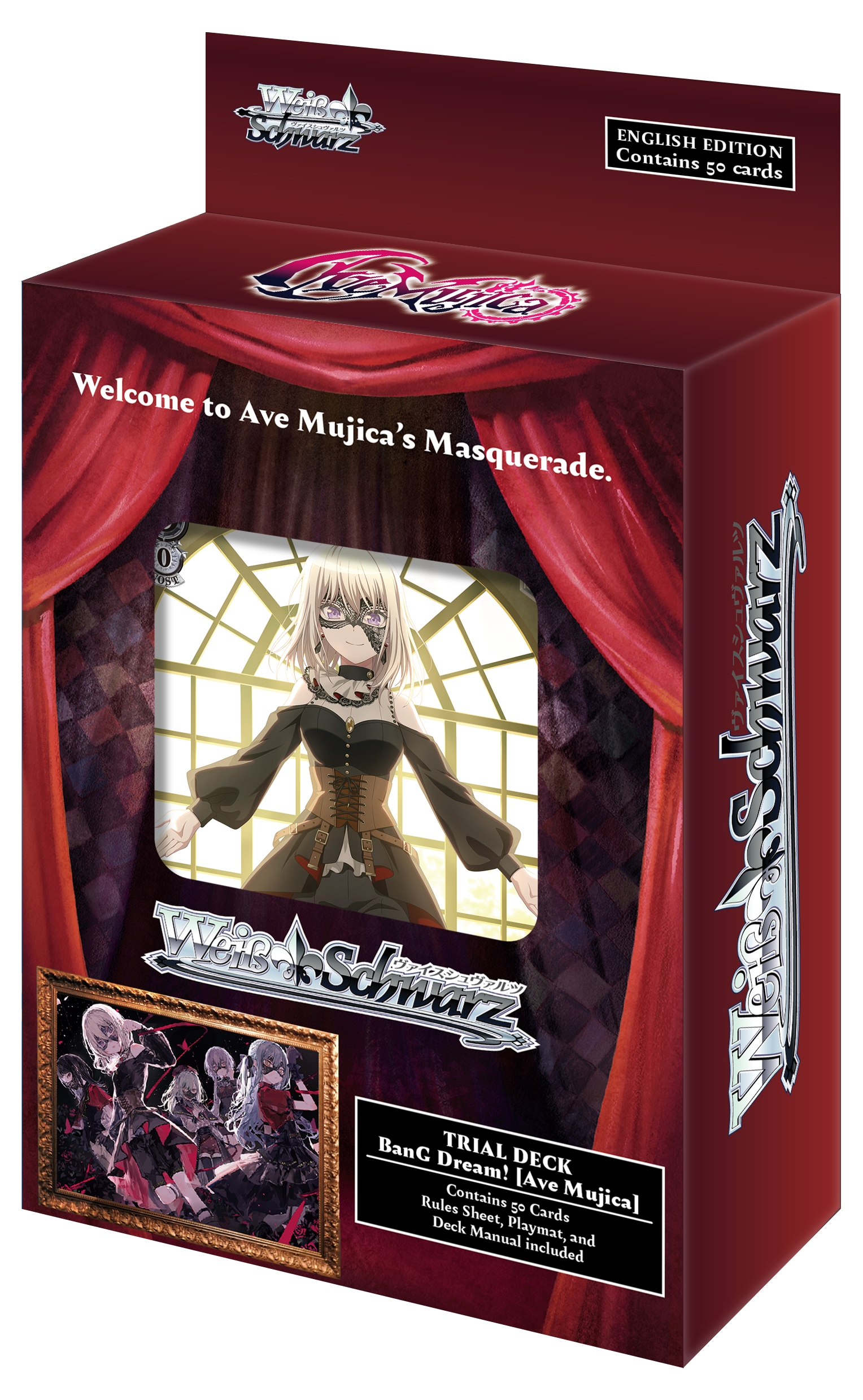 Get started with a Trial Deck from BanG! Dream, Ave Mujica to battle your opponents! Fully ready to go with 50 cards and instructions, you have all you need to start your story!